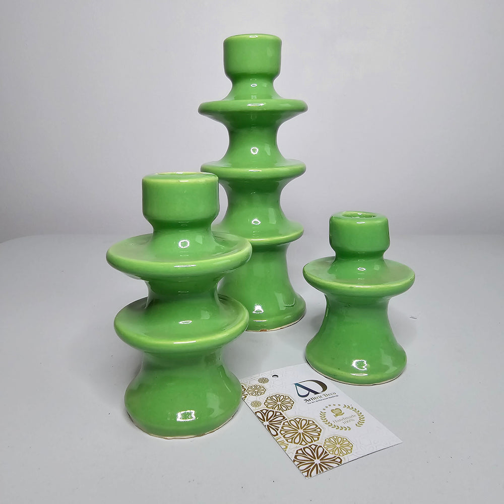Bring a touch of artisanal elegance to your decor with this trio of ceramic candle holders , handcrafted in Morocco. Their glossy finish, available in several carefully selected colors, illuminates any space with refinement.