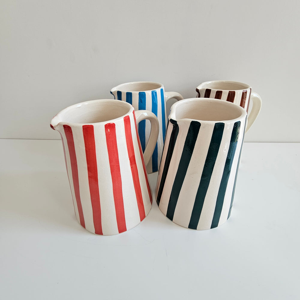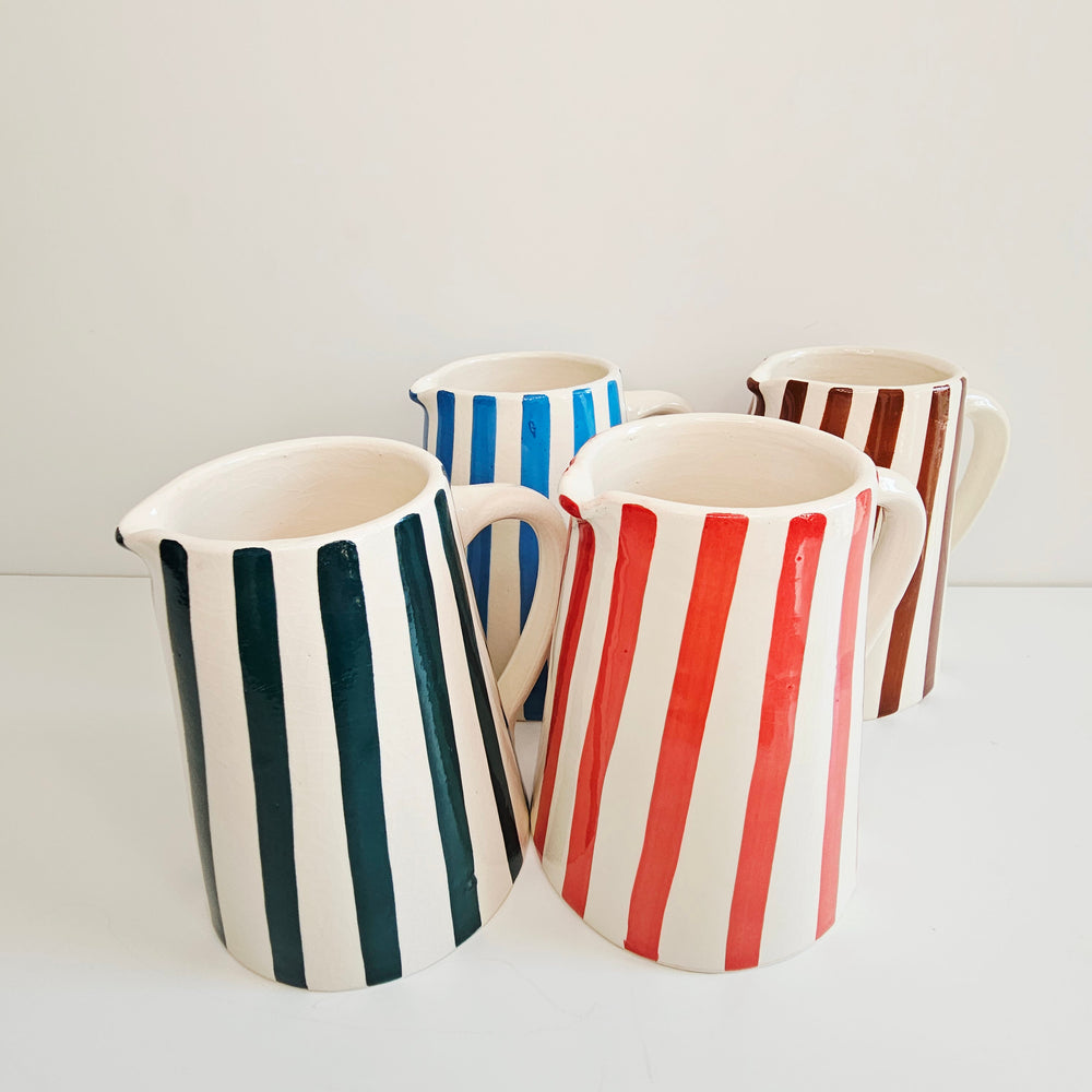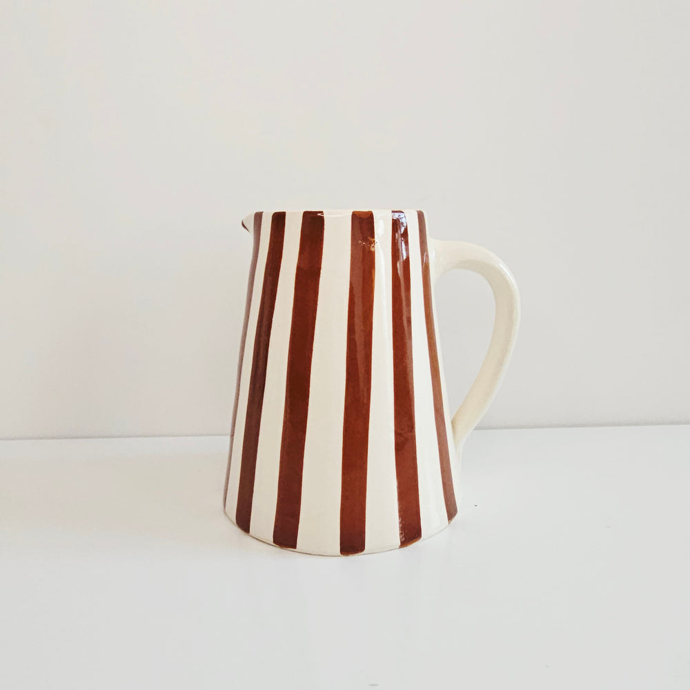 Liven up your table with the "Stripe Amazigh" carafe. Its hand-painted striped pattern gives it a pop, fresh, and artisanal feel. Made in Morocco, each carafe comes in a range of vibrant colors: orange, red, azure blue, navy blue, and chocolate brown, to suit any setting.