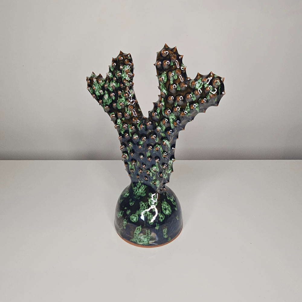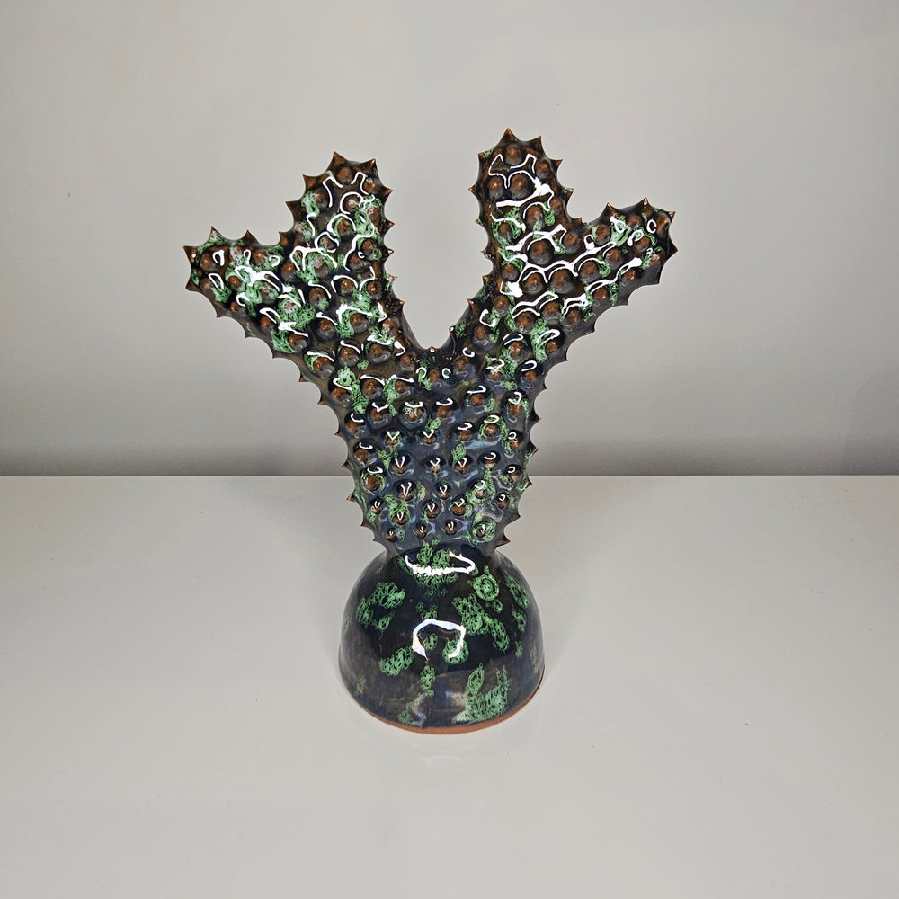 Give your home a touch of exoticism and contemporary elegance with the "Tamgroute" cactus: a ceramic sculpture inspired by the landscapes of southern Morocco and Berber symbolism. An object of contemplation, it enlivens consoles, shelves, or centerpieces, bringing its mineral light and graphic fantasy to every living space.