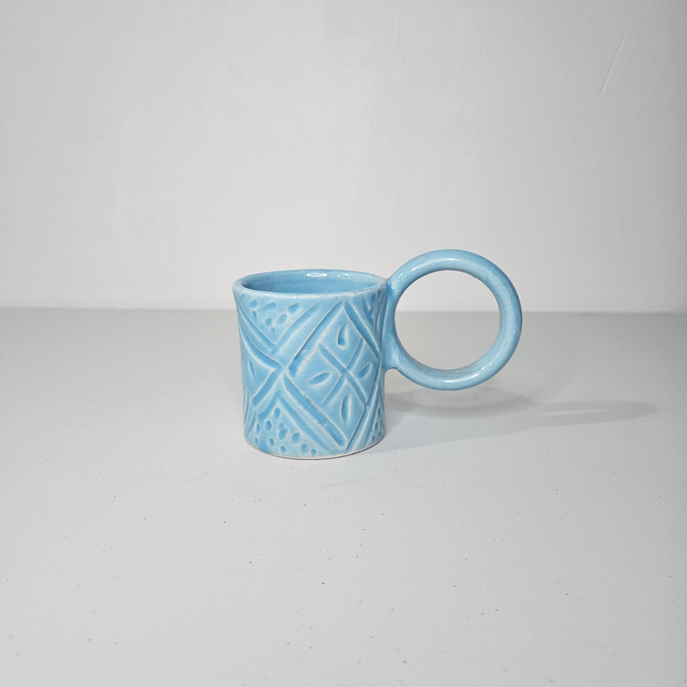 Reimagine your coffee/tea ritual with the Loop Atlas , a Moroccan mug with an oversized graphic handle. Available in a creative palette: blue, nude, mosaic, engraving, zellige tiles, or pop editions – each version celebrates craftsmanship and the boldness of contemporary design.