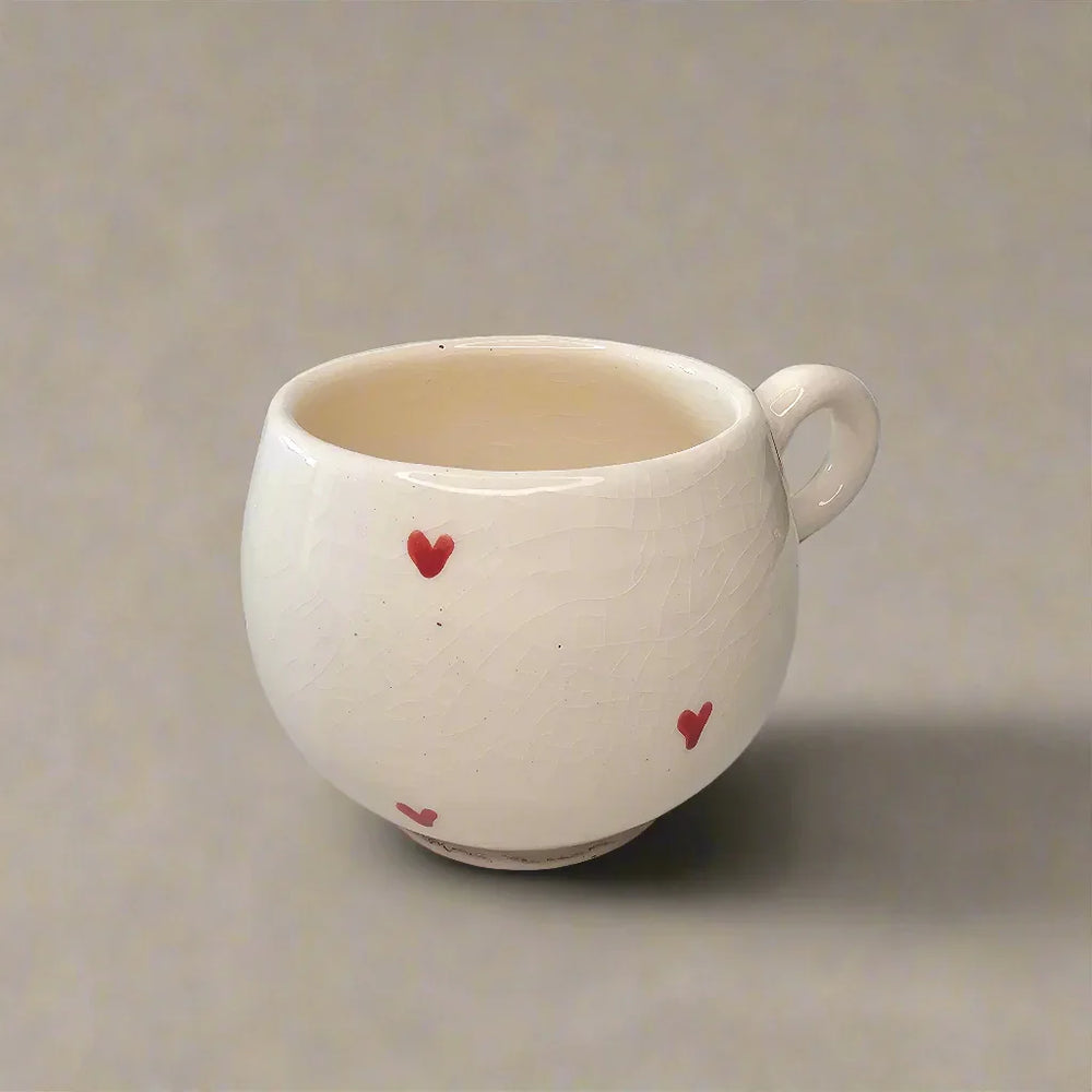 Elegant and warm, this Moroccan artisan mug is handcrafted by master potters in Marrakech. Its generous silhouette invites you to enjoy your favorite beverages, while its hand-painted red hearts symbolize passion and conviviality.