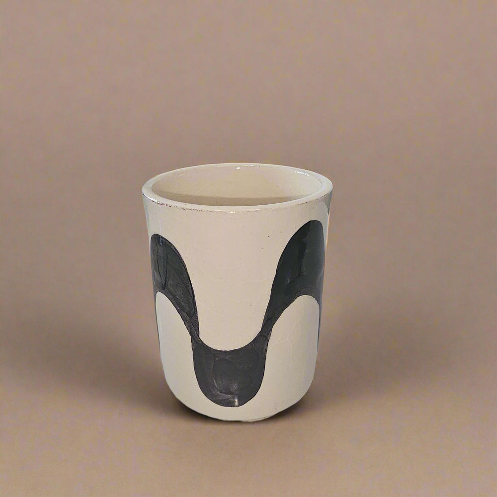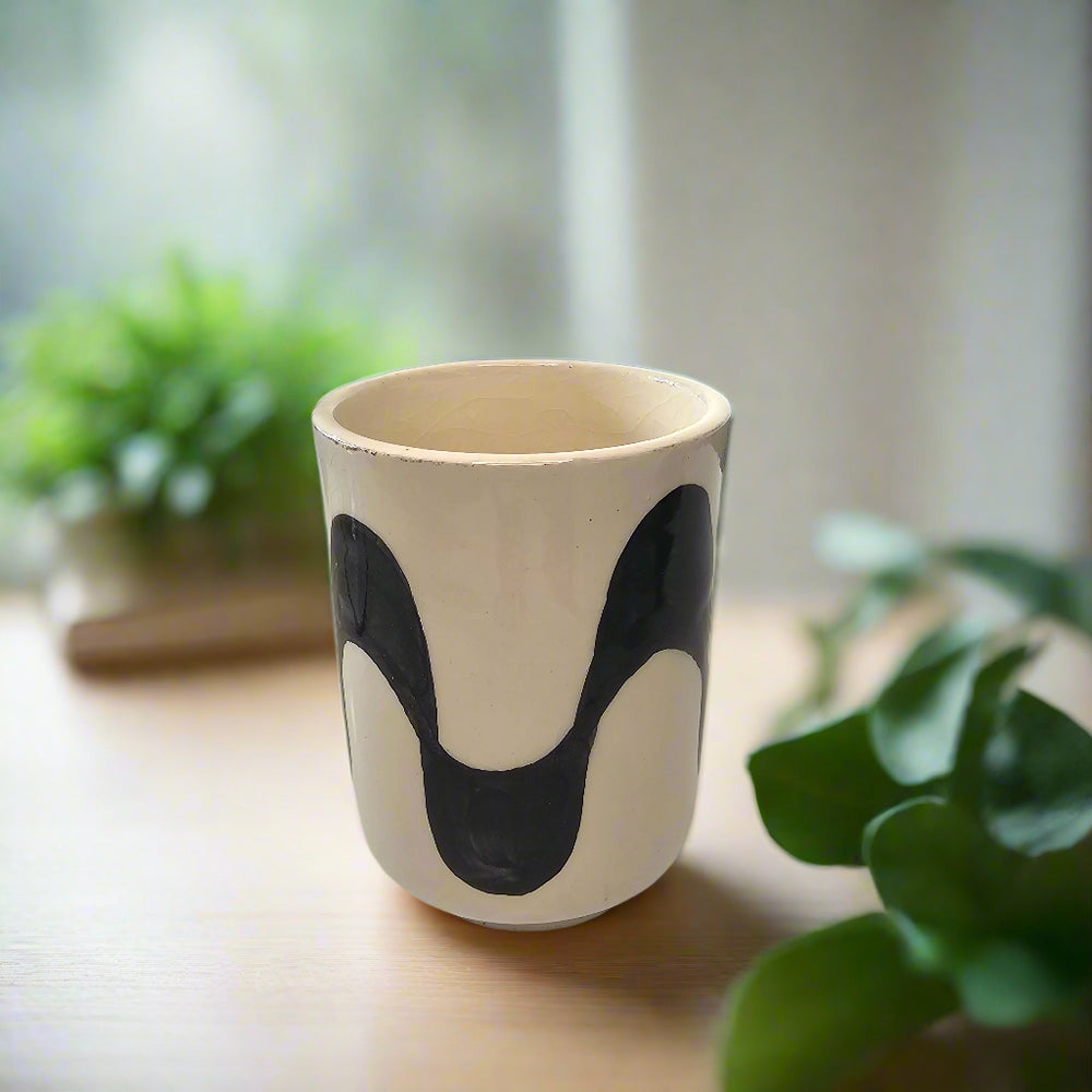 Brighten your mornings with the sunny spirit of Morocco with the "Tafoukt Amazigh" mug. This medium, hand-thrown cup features a graphic design inspired by Amazigh symbols—a deep black pattern that evokes the artistic flair and elegant simplicity of Berber potters. Perfect for coffee or tea, it brings warmth and character to every moment of enjoyment.